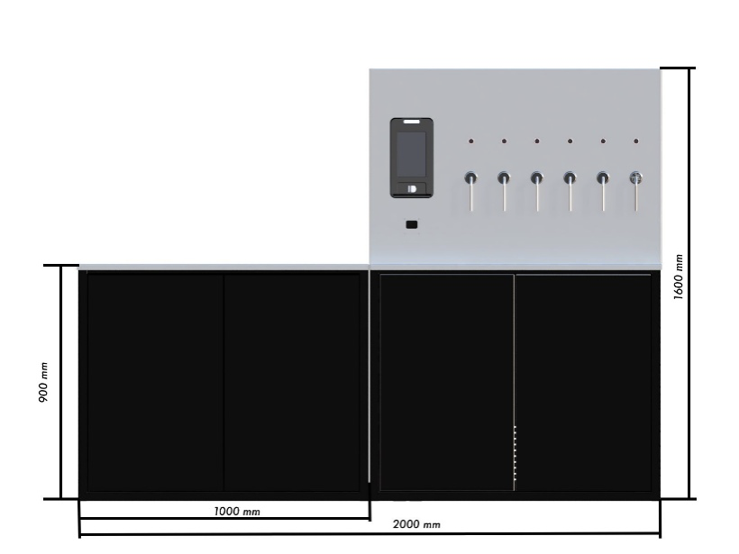 • 7-tolline EKRAN – puutetundlikul ekraanil saab klient valida kuni 6 jooki ning neid üksteise järel valada topsi.